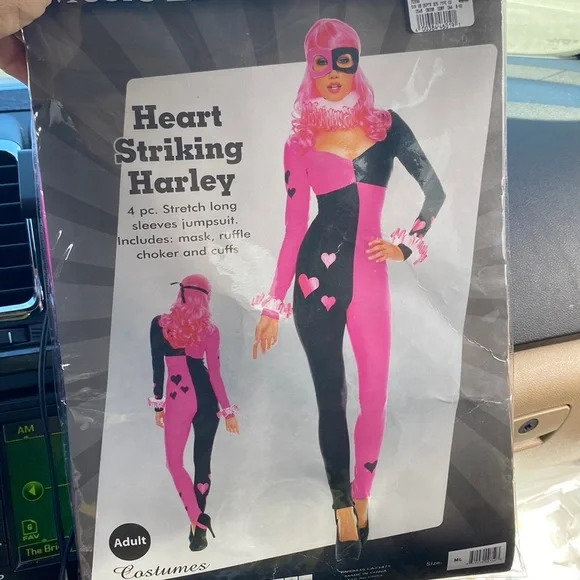 Heart Striking Harley costume includes stretch long sleeved jumpsuit mask ruffle choker and cuffs. Wig not included.